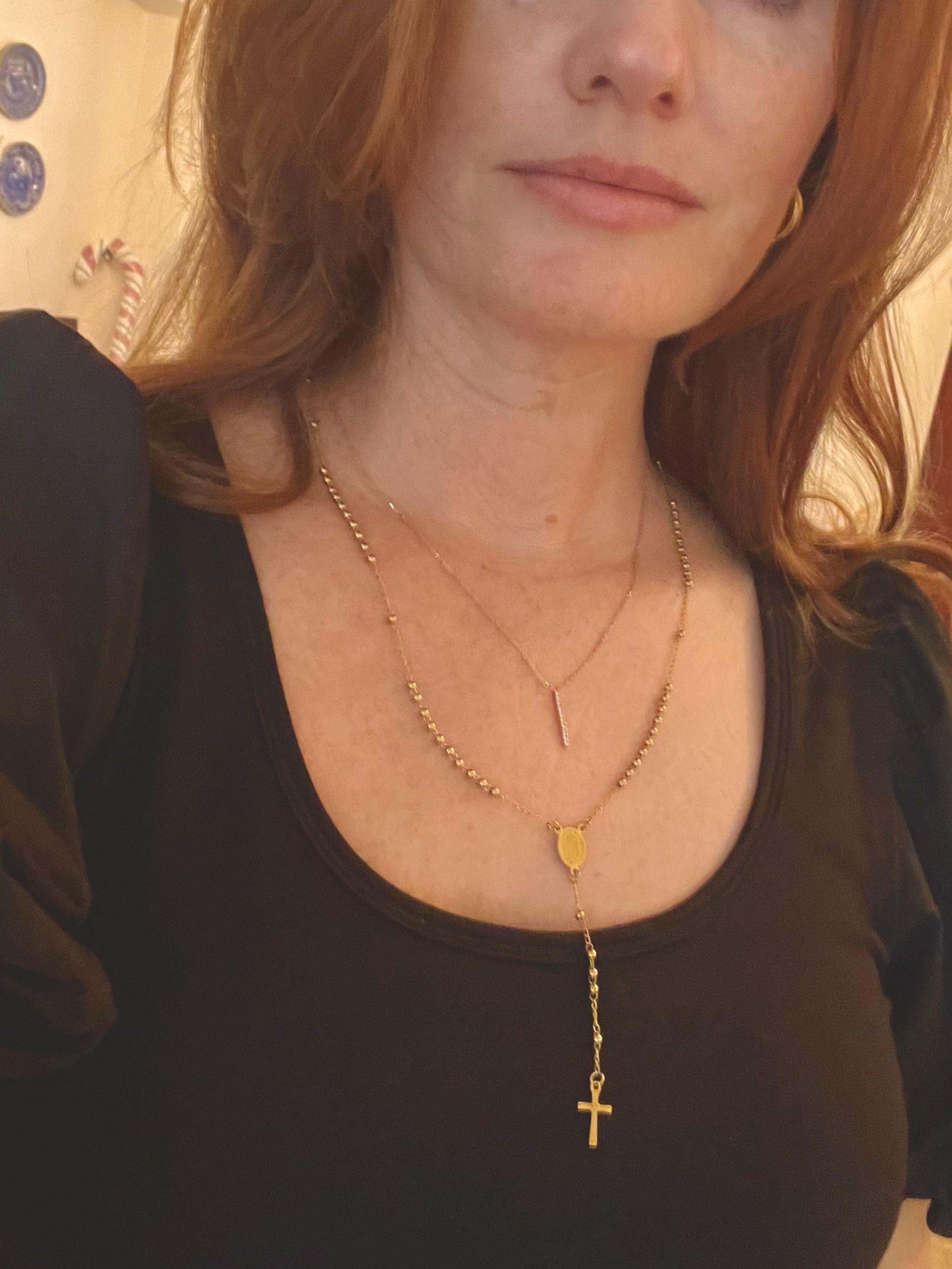 Rosary Necklace ⁄  Earrings ⁄  Jeans  ⁄  Top (similar)  ⁄  Shoes (similar)